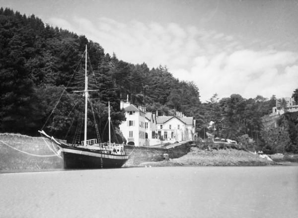 Almost as soon as Portmeirion Village opened in 1926, Clough bought and converted an old Porthmadog trading ketch which he moored alongside the quay - the Amis Reunis. The Amis was used as a houseboat until she was stranded on a shoal near the Ynys Gifftan. Her remains can still be seen off the coast of Portmeirion during low tide.