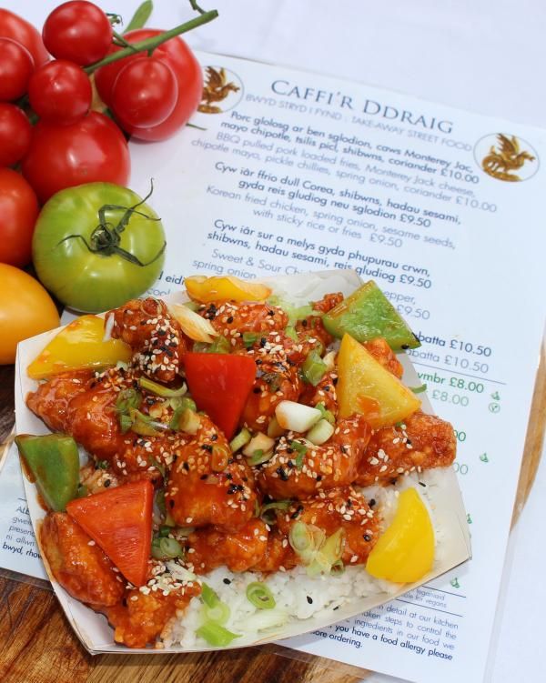Caffi’r Ddraig offers a variety of Take-away Street Food located in the centre of the village. Enjoy very tasty super-fast food and the scenery around you in nearby seating areas.
