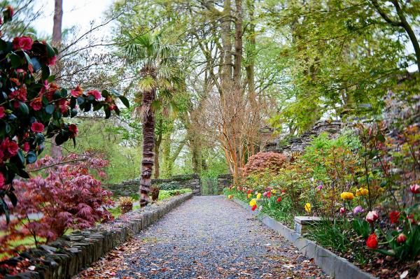 Castell Deudraeth has a carefully restored walled Victorian garden with lawns, flowerbeds and flowering trees.