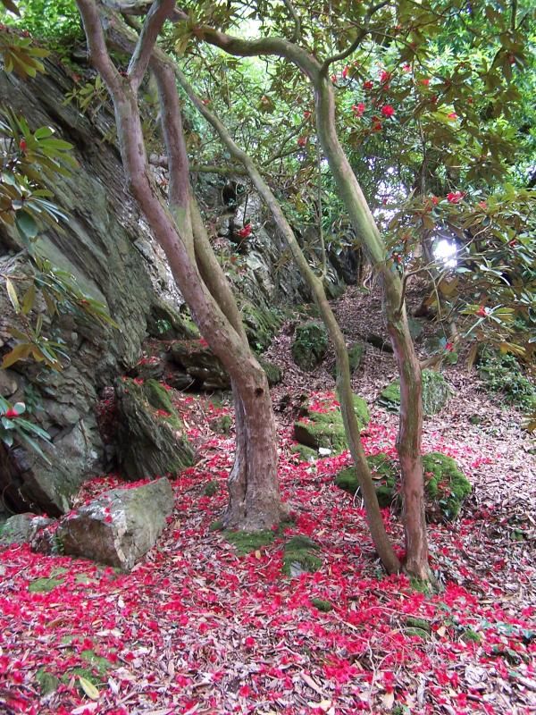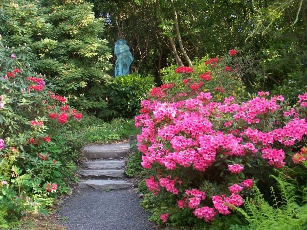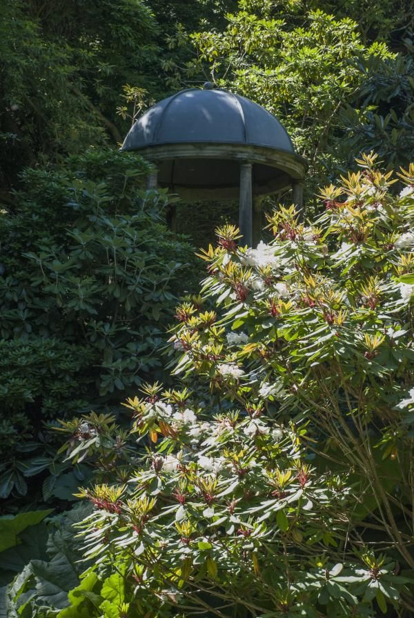 Among the 70 varieties of rhododendrons, are the red-flowering Portmeirion-bred cultivar rhododendron, known as the 'Gwyllt King'. Cook also planted a magnificent magnolia campbellii with its enormous pink flowers and several ginkgo bilobas.