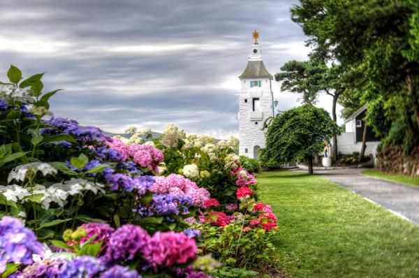 Discover the impressive natural landscape surrounding Portmeirion. The subtropical forest at Portmeirion, affectionately known as The Gwyllt (Wildwood in Welsh) features some of Britain's largest trees, secret gardens, a derelict castle and rare flowers. Explore the 70 acres of exotic woodlands with 19 miles of pathways which cut through forests, secret spaces and coastal coves.